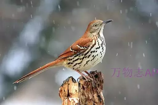 褐弯嘴嘲鸫,脊索动物门、鸟纲、雀形目、嘲鸫科、弯嘴嘲鸫属,分布于北美地区,包括美国、加拿大、格陵兰、百慕大群岛、圣皮埃尔和密克隆群岛及墨西哥境内北美与中美洲之间的过渡地带。