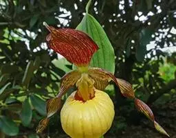 大花杓兰因其形状酷似一个口小肚大的囊袋,又名“大口袋兰”。花体呈紫红色,花朵直径5厘米至6厘米,…