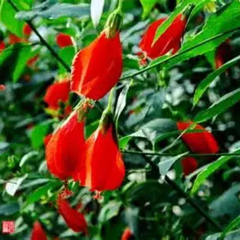 红萼苘麻是锦葵科、苘麻属常绿软木质灌木,叶绿色,长5-10厘米,心形,叶端尖,叶缘有钝锯齿,有时分裂,…