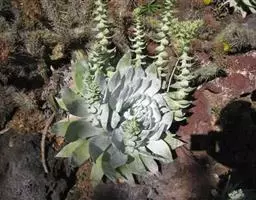 蓝黛莲是一种景天科厚叶草属植物。叶片呈略扁的圆柱形,排列成莲座状;颜色为灰绿色,…