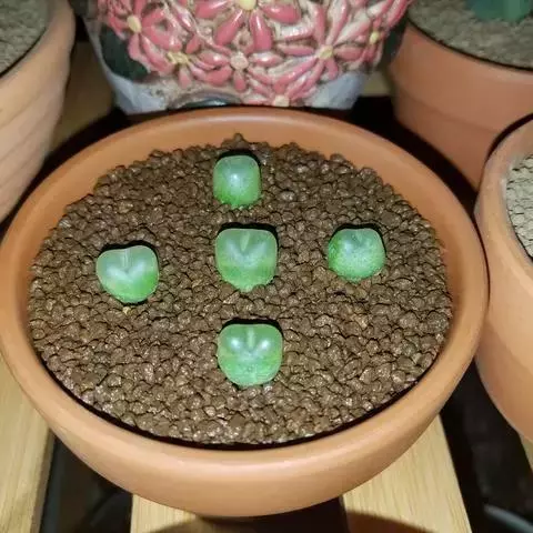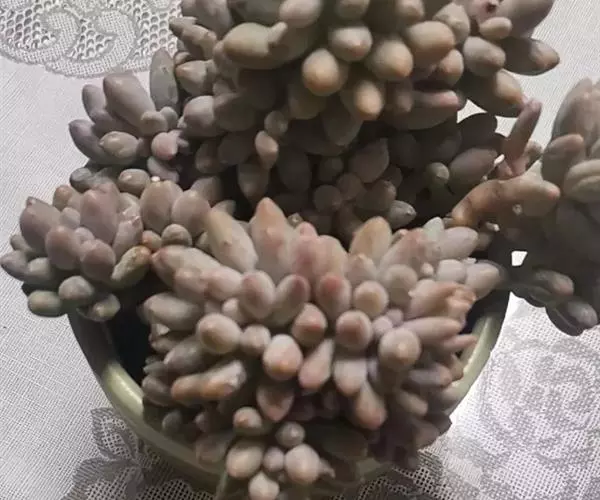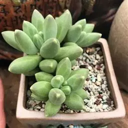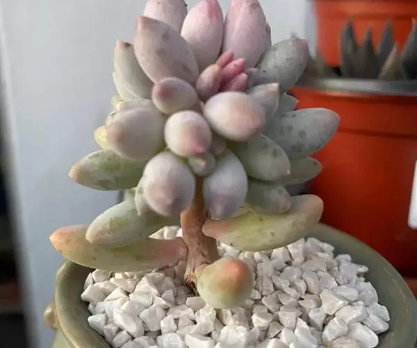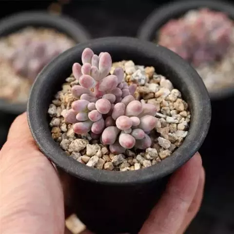 灯美人是景天科的园艺品种,多肉植物。叶片近柱状,丛生,在日照时间长、温差大的环境下会呈现橙粉色。