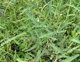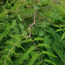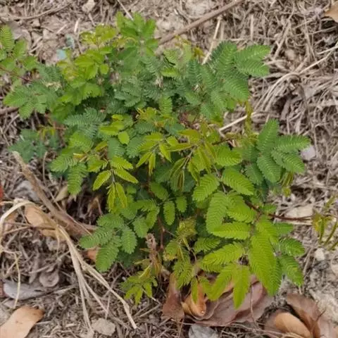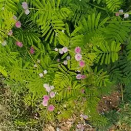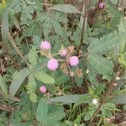 巴西含羞草(学名:Mimosa diplotricha C. Wright)是豆科、含羞草属植物。直立、亚灌木状草本;茎攀援或平卧,长达60厘米,五棱柱状。复叶长10-15厘米;总叶柄及叶轴有钩刺;羽片长2-4厘米;小叶线状长圆形,被白色长柔毛。花紫红色,花萼极小;花冠钟状,外面稍被毛;子房圆柱状,花柱细长。荚果长圆形,边缘及荚节有刺毛。花果期3-9月。