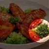 2.待油温开至九成热(约225℃)时,再将丸子放入油内,炸至金黄色捞出装盘。外带花椒盐或糖醋汁上席食用。