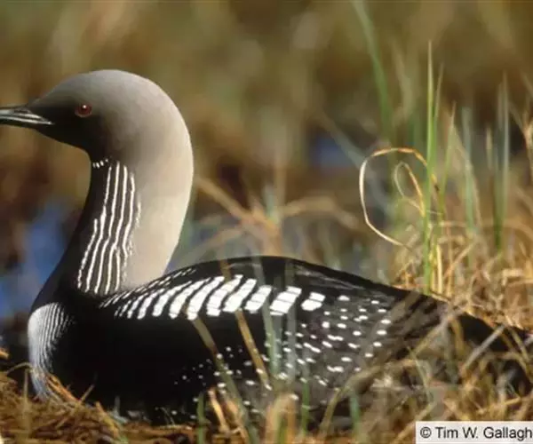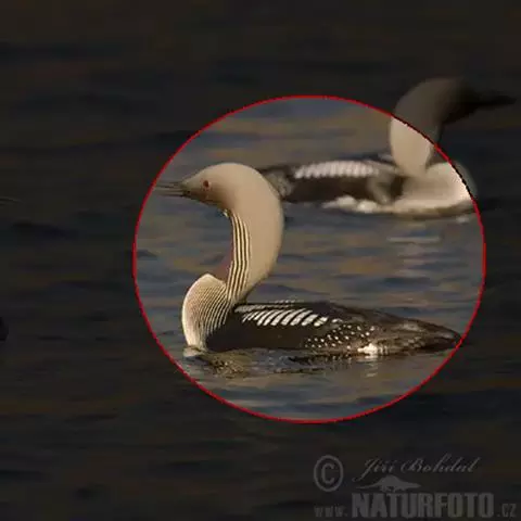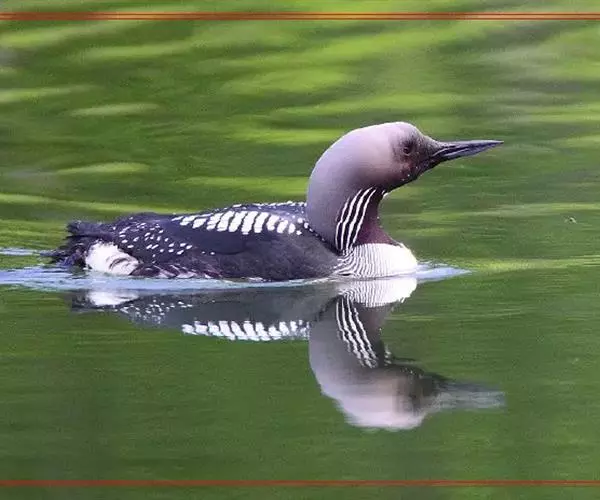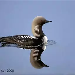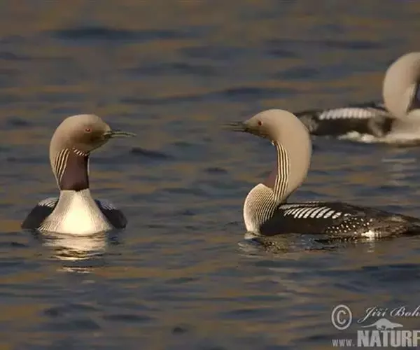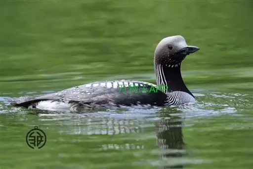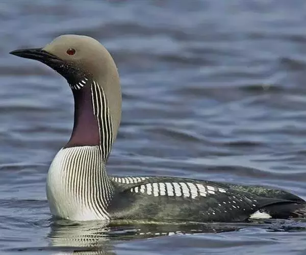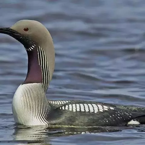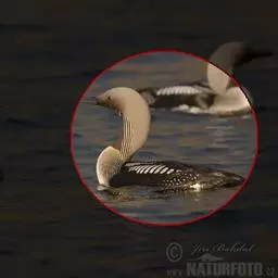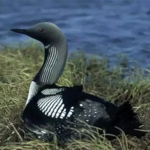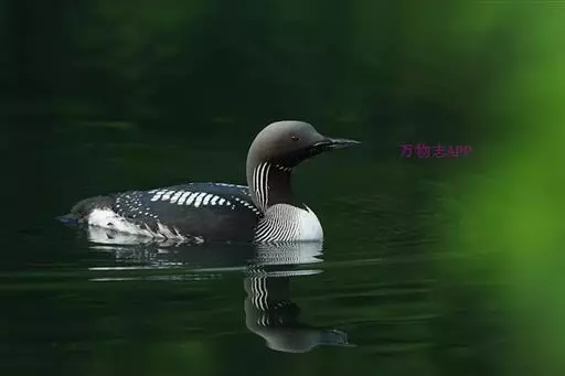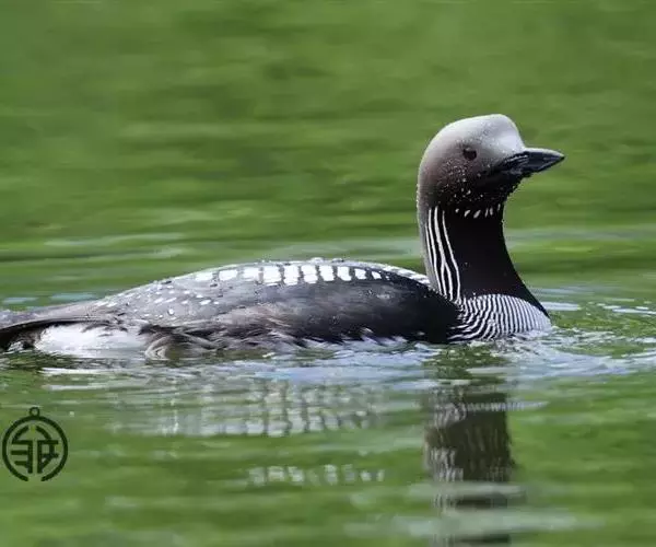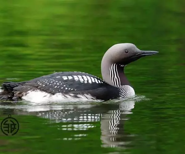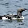 黑喉潜鸟(学名:Gavia arctica)为潜鸟目下的大型水禽,体长56-75厘米,体重雄性3.3-3.8千克,雌性2-3.1千克。个体较红喉潜鸟大,嘴直,颈粗而长,常弯曲成优美的S型。夏羽头顶至后颈灰色;喉及前颈黑色而具绿色金属光泽;颈侧有白色纵纹,下喉具白色斑点组成的横带;背黑色,具长方形白色横斑,两翼具白色细斑点;下体白色,胸侧有黑色细纵纹。冬羽从前额至后颈黑色;颏、喉至前颈白色;胸侧有黑褐色纵纹;两胁有黑斑,后胁白色明显可见。
