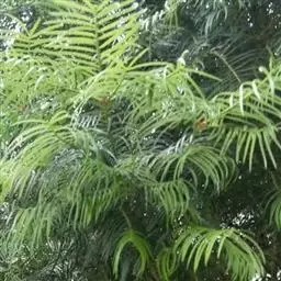 粗榧(学名:Cephalotaxus sinensis (Rehd. et Wils. ) Li)是三尖杉科,三尖杉属灌木或小乔木,高可达15米,树皮灰色或灰褐色,叶条形,排列成两列,基部近圆形,几无柄,上面深绿色,中脉明显,雄球花聚生成头状,雄球花卵圆形,基部有苞片,花丝短,种子着生于轴上,卵圆形、椭圆状卵形或近球形,3-4月开花,8-10月种子成熟。