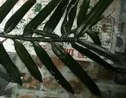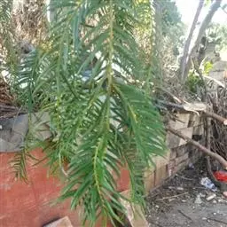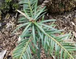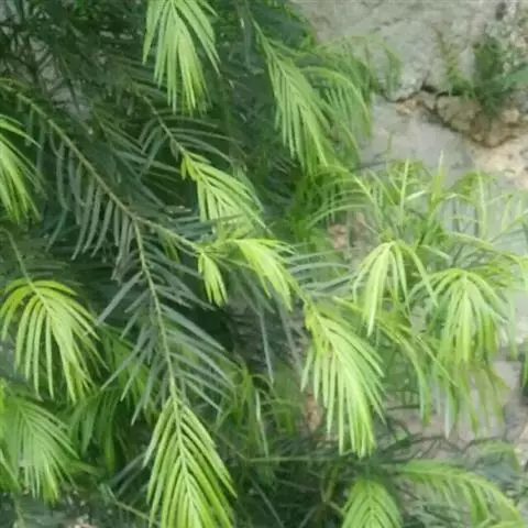 粗榧 灌木或小乔木,高达15米,少为大乔木;树皮灰色或灰褐色,裂成薄片状脱落。叶条形,排列成两列,通常直,稀微弯,长2-5厘米,宽约3毫米,基部近圆形,几无柄,上部通常与中下部等宽或微窄,先端通常渐尖或微凸尖,稀凸尖,上面深绿色,中脉明显,下面有2条白色气孔带,较绿色边带宽2-4倍。