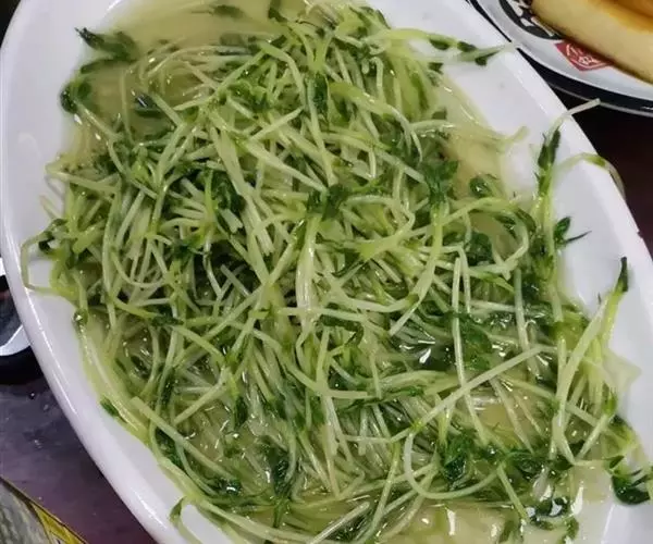 豌豆苗500克 精盐2.5克 味精2克 素油75克