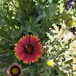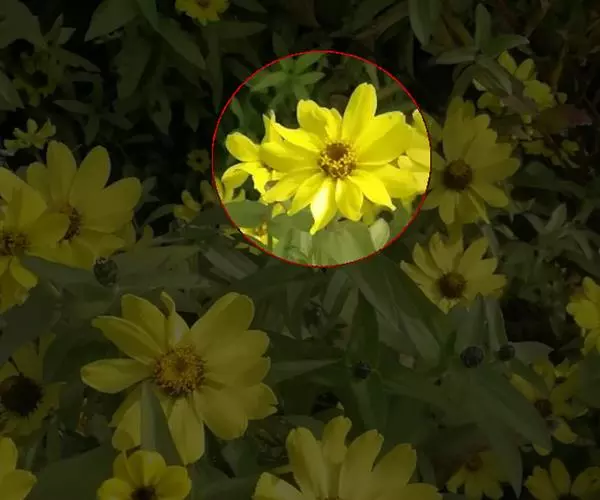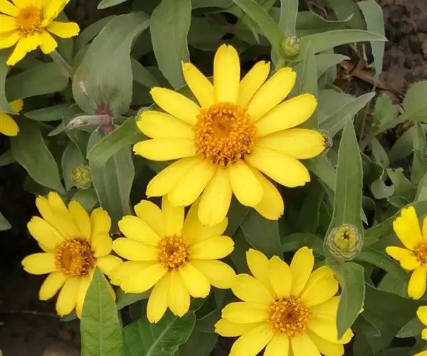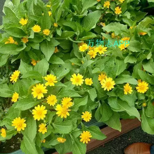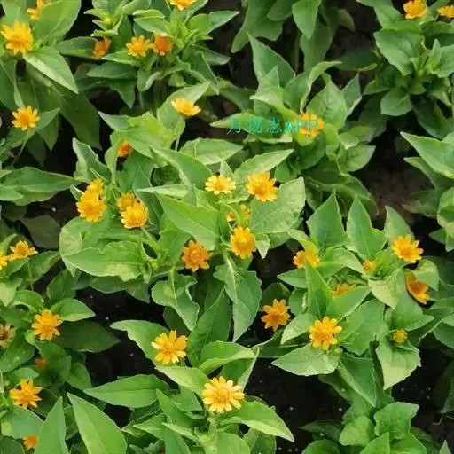 头状花序,总苞黄褐色,半球状,周边花舌状,金黄色,花直径约3cm。株型紧凑,不断分枝,不断抽生花序,故花多繁盛,开花不绝。