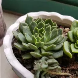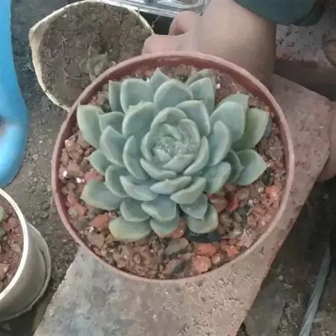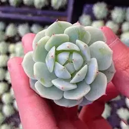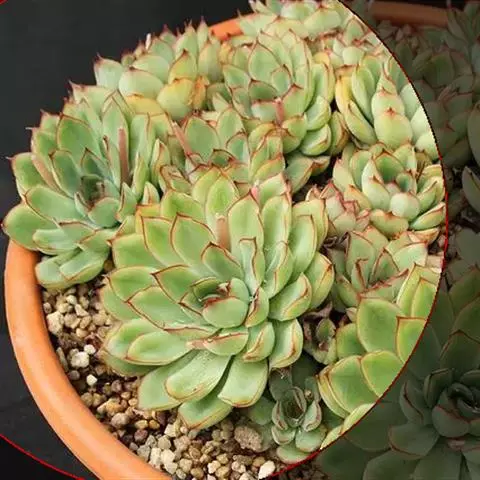 大和锦是景天科拟石莲花属的多肉植物。肉质叶排成紧密的莲座状,广卵形至散三角卵形,背面突起呈龙骨状,…