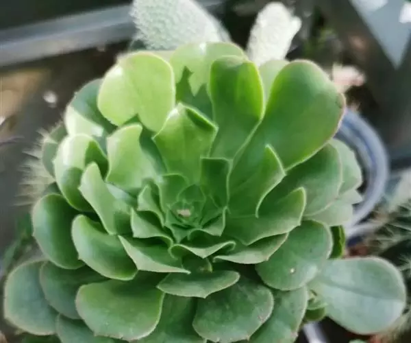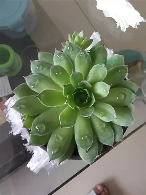 莲花掌叶片呈莲座状排列,叶片肥厚,颜色翠绿,形状似池中莲花,被称为“永不凋谢的花朵”,具有极高的观赏价值;置于书桌、几架、窗台、阳台等处,如同有生命的艺术品,是较流行的小型多浆植物之一。