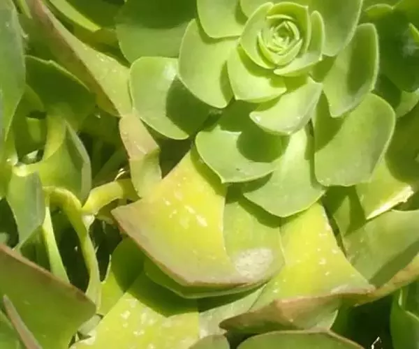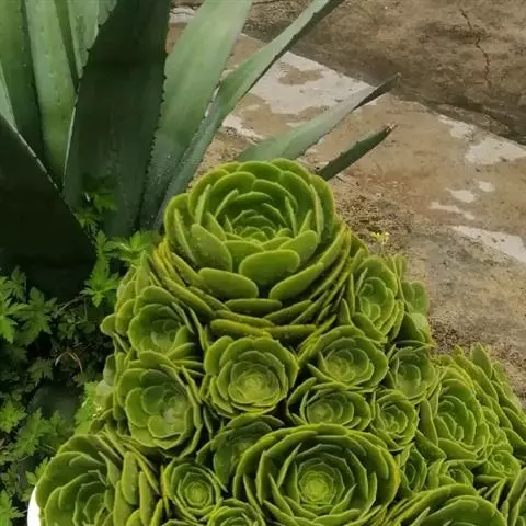 莲花掌(学名:Aeonium arboreum Webb & Berthel.)是景天科莲花掌属植物。为多年生肉质草本,株高可达60厘米,有匍匐茎。根茎粗壮,有多数长丝状气生根。叶丛紧密,直立呈莲座状,叶倒卵形。花梗白叶丛中抽出,花茎柔软,有苞片,具白霜。有8-24朵花,聚伞花序,花茎高20-30厘米,外面粉红色或红色,里面黄色,花冠红色,花瓣披针形不张开,花期6-10月。 [1-2]