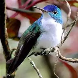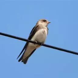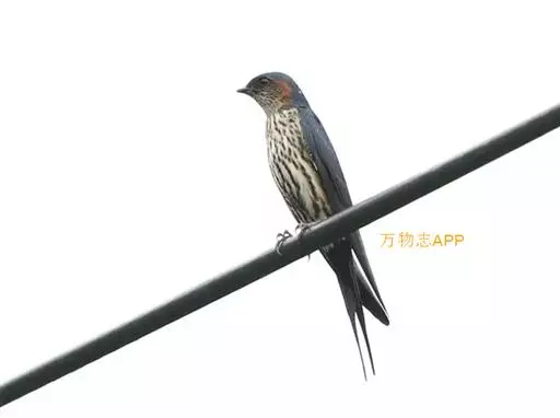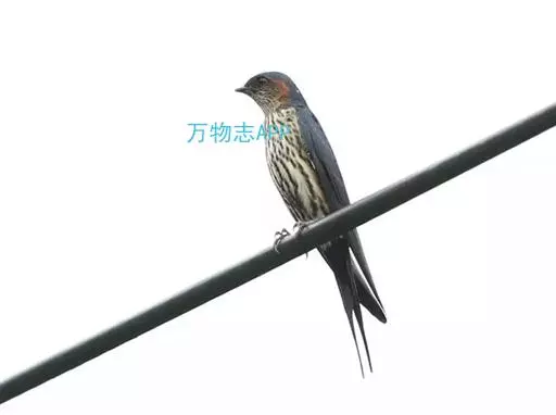线尾燕,腹部接近纯白色,背部则为深紫色,头部的羽毛是栗色的。