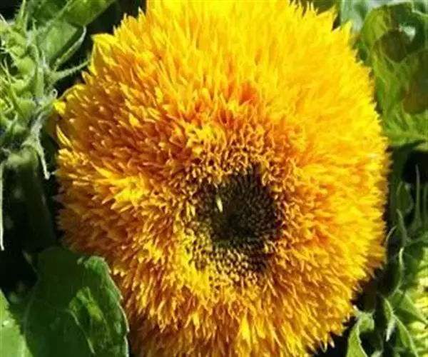 千瓣葵为一年生草本植物。株高30~50cm,叶互生、宽卵形,先端尖,基部心形,边缘具粗锯齿,两面被糙毛,有长柄。头状花序单生于茎顶,重瓣花金黄色。花期7~9月。瘦果灰色或黑色,果熟期9~10月。