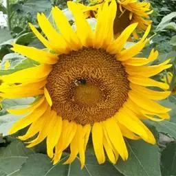 打杈、打叶:在花盘形成期,有些品种,在茎秆中、上部常发生分枝现象,要及时除掉,使营养集中在主茎花盘上,保证籽粒饱满充实。打杈工作要及时,做到“枝杈一冒,立即打掉”,此外密度过大,通风透光不良或有徒长现象的地块,应在花授粉后适当打掉部分不太起作用的老叶。