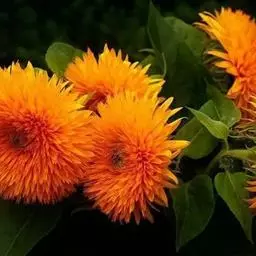 千瓣葵(Helianthus decapetalus Linn.),又名矮生葵花,为菊目向日葵属植物。一年生草本植物,株高30~50cm,叶互生,宽卵形,先端尖,基部心形,头状花序单生于茎顶,重瓣花金黄色,花期7~9月,瘦果灰色或黑色,果熟期9~10月。千瓣葵喜温暖向阳环境,不耐寒,宜于深厚肥沃砂壤土生长,原产北美,现世界各国广为栽培。园林中千瓣葵多用于庭院绿化、布置花坛,也可盆栽观赏。