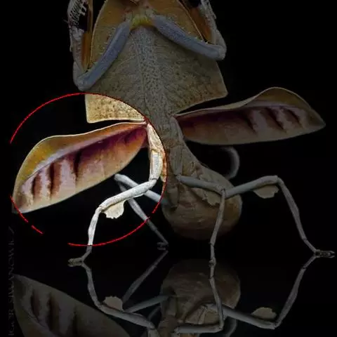 下位笼的笼盖为椭圆形至卵形,可长达6厘米,宽至5厘米。其大致水平,边缘常上翘。末端浑圆,而基部偶尔为心形或略呈心形。笼盖的下表面无附属物,但其上表面可能具有多细胞的丝状附属物。该附属物的形状不稳定,可能完全消失。这些长毛可长达20厘米,可分叉。其发自笼盖的叶脉的末端,每个笼盖上长毛的数量可达45根。其仅限于笼盖边缘。笼盖下表面稀疏分布着椭圆形的缘纹蜜腺。这些蜜腺都非常小,直径仅0.1至0.2毫米。笼盖基部后方的笼蔓尾可长达9毫米。其单一或反复分叉至丛生。马丁·奇克和马修·杰布观察的笼蔓尾基部5叉,每叉又再分支。