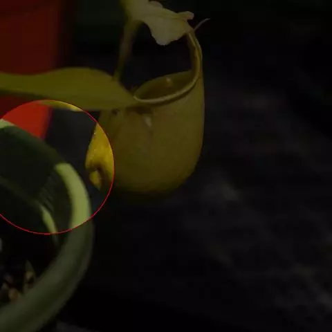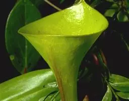 钩唇猪笼草攀援茎侧芽的下位笼 钩唇猪笼草是印度尼西亚苏拉威西特有的热带食虫植物。