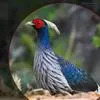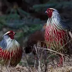 血雉雉科血雉属鸟类,别名血鸡、松花鸡,血雉的雄鸟大覆羽、尾下覆羽、尾上覆羽、脚、头侧、腊膜为红色,…