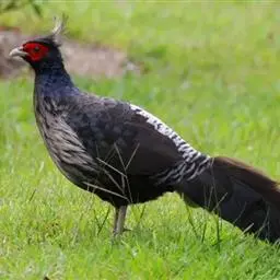 白颈长尾雉:大型鸡类,体长81厘米,体型大小和雉鸡相似。雄鸟头灰褐色,颈白色,脸鲜红色,其上后缘有…