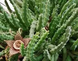 豹皮花 L.C.Leach)是马利筋亚科豹皮花属植物。肉质植物,茎亮绿色,几株簇生在一起,…
