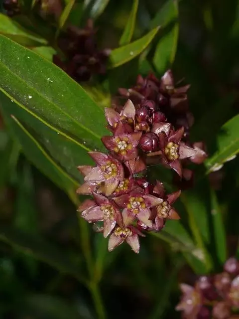 鳝藤,攀援灌木,有乳汁;枝土灰色。叶长圆形或披针形,顶端渐尖,基部楔形。聚伞花序总状式,顶生;小苞…