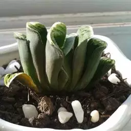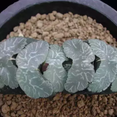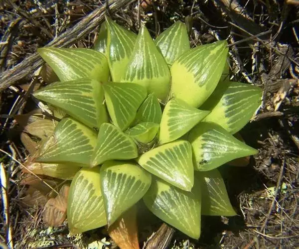 康平寿(Haworthia emelyae var. comptoniana (G.G.Sm.) J.D.Venter & S.A.Hammer)是隶属于阿福花科、瓦苇属的多年生植物,原产南非。多肉植物。植株矮小、无茎。叶短而肥厚,螺旋状生长,呈莲座状排列,半圆柱形,顶端呈水平三角形,截面平而透明,形成特有的「窗」状结构,窗上有明显脉纹。花葶细长,小花白色、筒状。