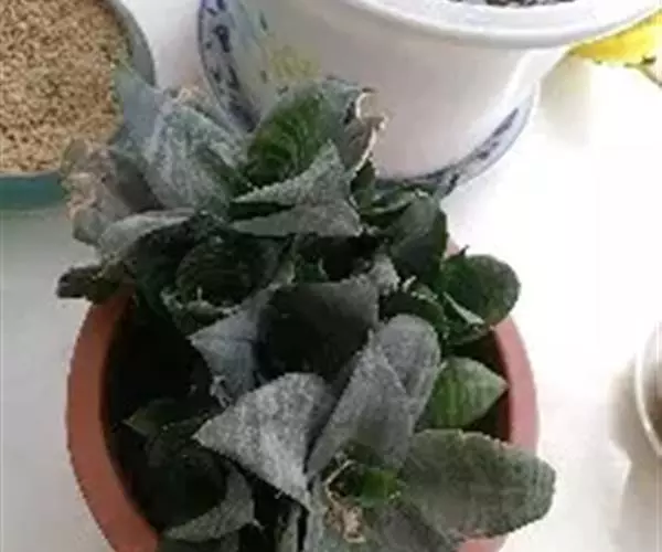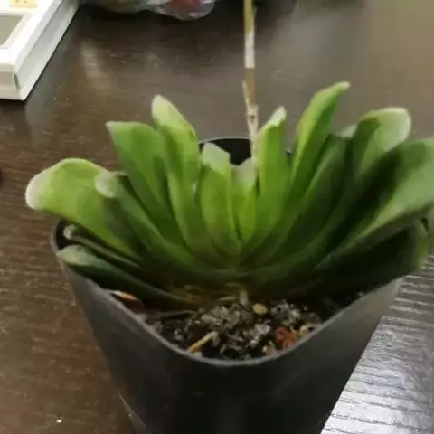 植株无茎,肉质叶排成莲座状,叶色深绿或褐绿色,先端卵圆状三角形,有浅色网格状脉纹,叶缘有细齿 。