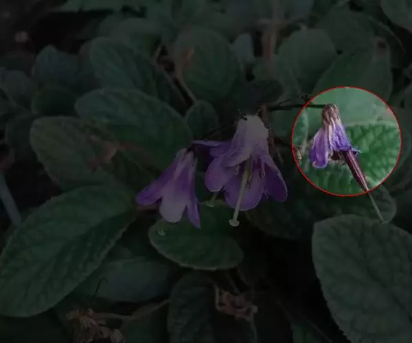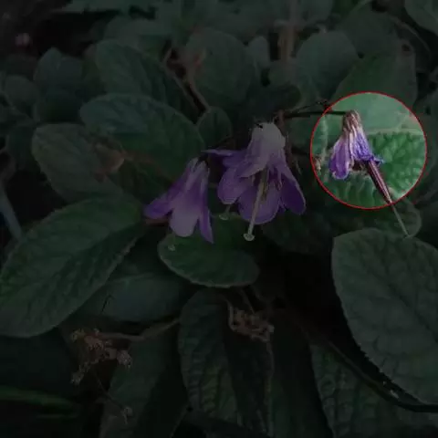 花冠漏斗状筒形,长6.5-7.5毫米,蓝紫色、淡红色至白色,外面无毛,内面于筒部远轴面被短柔毛;筒部长4-4.5毫米,口部直径约1.5毫米,基部上方直径约0.7毫米;檐部2唇形,上唇直立,长1.3-2毫米,先端2浅裂,下唇平伸,长2.5-3毫米,3浅裂,中央裂片较大。雄蕊4,着生于冠筒内面基部上方2.5-3毫米处,无毛;花丝狭线形,长1.5-1.8毫米,远轴2枚较长;花药肾状圆形,长0.3-0.4毫米,宽约0.5毫米。雌蕊无毛;子房斜长圆状披针形,长1.9-2.2毫米;花柱细长,长3-3.5毫米;柱头2唇形,下唇较长,长圆形。