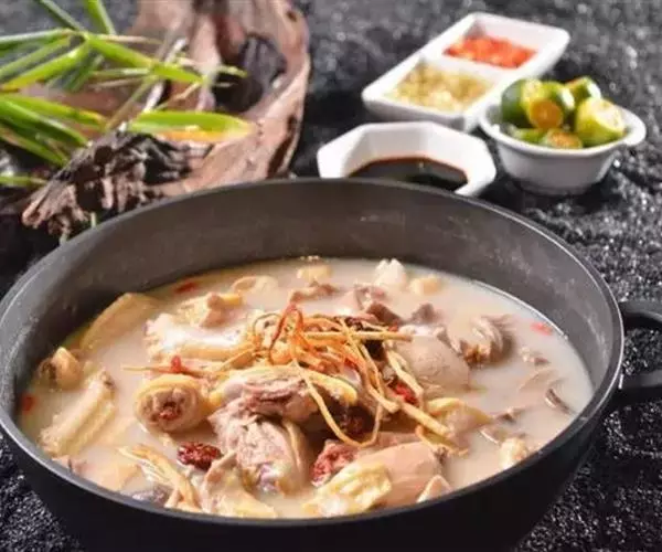 猪肚包鸡 猪肚包鸡,又名猪肚包鸡火锅、凤凰投胎。是广东省传统的客家菜。流行于广东的惠州、河源、梅州等粤东一带。广东客家地区酒席必备的餐前用汤,汤里浓中带清,有浓郁的药材味和胡椒香气。