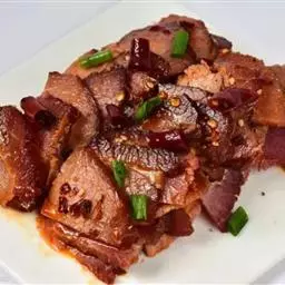 蒜香回锅肉是以五花肉、素鸡为原料制作而成的一道美食。