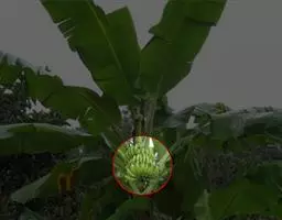 香蕉’),芭蕉科芭蕉属多年生草本植物,植株丛生,有匐匍茎;假茎浓绿有黑色斑点;叶片长圆形,…