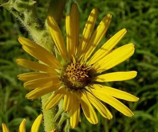 串叶松香草(学名:Silphium perfoliatum L.)是菊科松香草属植物。多年生草本,根系发达粗壮,支根多,一般株高2-3米,最高的可达3.5米,茎实心,嫩时质脆含汁。叶色深绿,叶片宽大,一般长约60厘米左右,宽30厘米左右,最长叶可达97厘米。头状花序,似菊芋花序,花盘直径2-3厘米,种子为心脏形瘦果,扁平,千粒重23.3克。