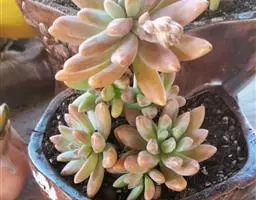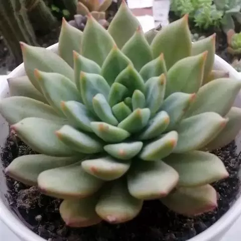女雏是景天科石莲花属的多肉植物。特征是小巧的株形和橙粉色叶缘。极易生侧芽,…