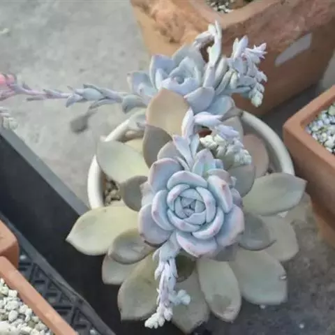 蓝石莲是景天科、拟石莲花属的多肉植物。茎部粗壮,成熟植株茎部木质化。叶片莲座型密集排列,株径不会很大,…