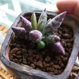 大和锦是景天科拟石莲花属的多肉植物。肉质叶排成紧密的莲座状,广卵形至散三角卵形,背面突起呈龙骨状,…
