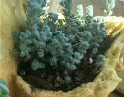 蓝黛莲是一种景天科厚叶草属植物。叶片呈略扁的圆柱形,排列成莲座状;颜色为灰绿色,…