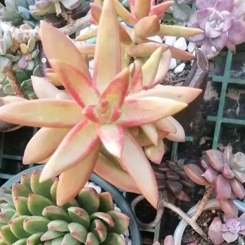 红化妆是虎耳草目、景天科、拟石莲花属植物,是多茎莲与静夜的杂交后代。…