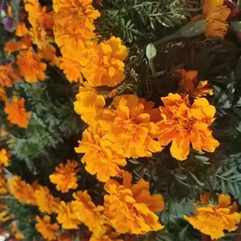万寿菊是菊科万寿菊属一年生草本植物,别名孔雀菊、缎子花、臭菊花、西番菊、红黄草、小万寿菊、臭芙蓉、孔雀草。万寿菊茎近基部分枝。叶羽状分裂,长5-10厘米,宽4-8厘米,裂片长椭圆形或披针形,具锐齿,上部叶裂片齿端有长细芒,叶缘有少数腺体。头状花序单生,径5-8厘米,花序梗顶端棍棒状。总苞长1.8-2厘米,径1-1.5厘米,杯状,顶端具尖齿。舌状花黄或暗橙黄色,长2.9厘米,舌片倒卵形,长1.4厘米,基部成长爪,先端微弯缺。管状花花冠黄色,长约9毫米,冠檐5齿裂。瘦果线形,被微毛;冠毛有1-2长芒和2-3短而钝鳞片。花期7-9月。万寿菊中国各地均有栽培,在广东和云南南部、东南部已归化,国外原产墨西哥。万寿菊对土壤要求不严,但以肥沃疏松排水良好的土壤为好。耐移栽,种子发芽适温21-24℃,植株生长适合温度为20-29℃。喜温暖和阳光充足的环境,不