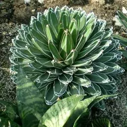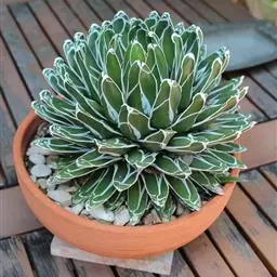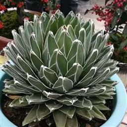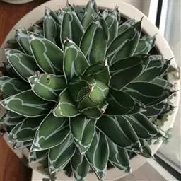 皇后龙舌兰是天门冬科、龙舌兰属多年生草本多浆植物。无主茎,叶丛生,莲座状,株幅40厘米。叶较多,…