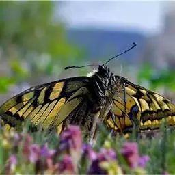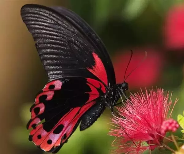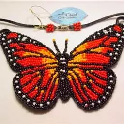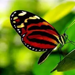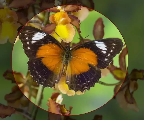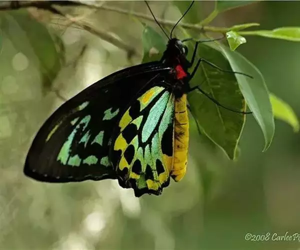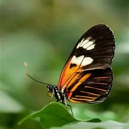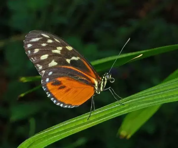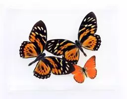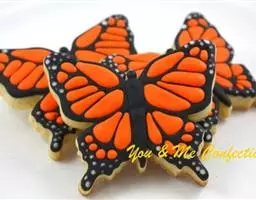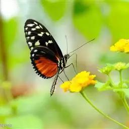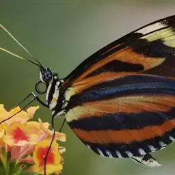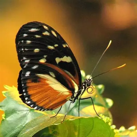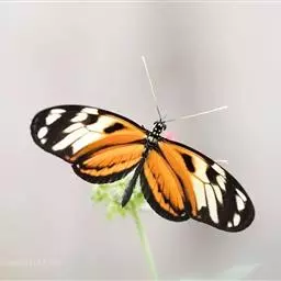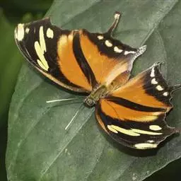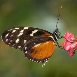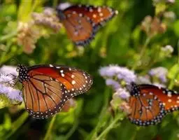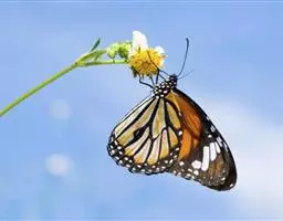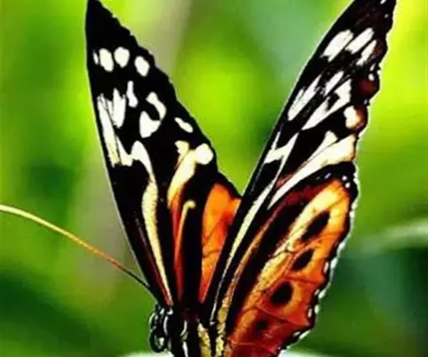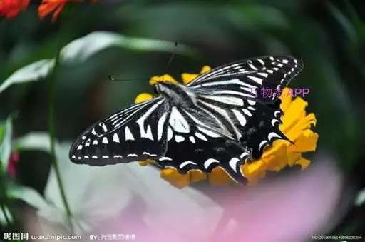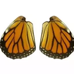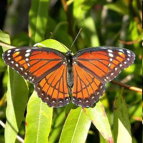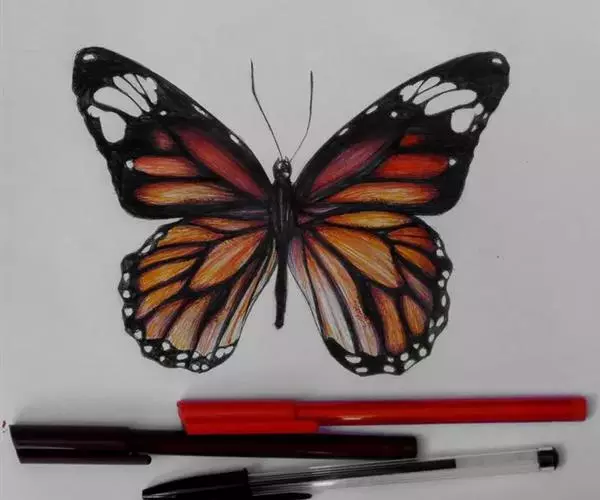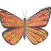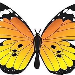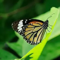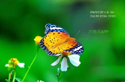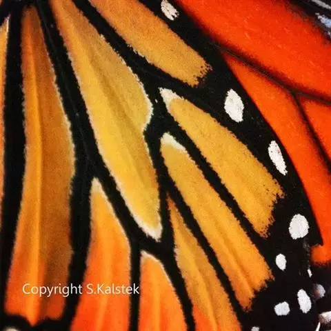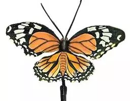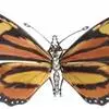 黑脉金斑蝶:翅阔8.6-12.4厘米。雄蝶较雌蝶为大。成年蝶颜色鲜艳,翅膀上有显眼的橙色及黑色斑纹…