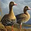 小白额雁鸭科雁属鸟类,体长53-66厘米,翼展120-135厘米,体重1400-2300克。腿桔黄色,…