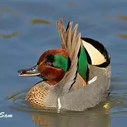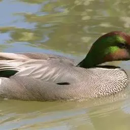 绿翅鸭是小型鸭类,体长37厘米,体重约0.5千克。嘴脚均为黑色。雄鸟头至颈部深栗色,…