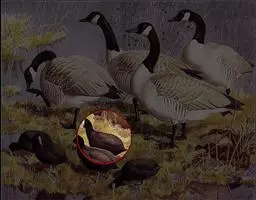 黑雁是雁形目鸭科黑雁属鸟类,又称黑鹅。头、颈、胸、嘴及脚黑褐色;虹膜褐色;背及两翼灰褐色;尾下覆羽白色;胸侧及胁部多近白色纹;颈部两侧各具一个特征性白色横纹,在颈前后断开,未能联成颈环。幼鸟颈部无白斑,而翅上多白色横纹。黑雁繁殖于北美洲、西伯利亚极地的苔原冻土带,越冬于南方沿海的草地及河口。在中国安徽也能见其身影。主要栖息在海湾、海港及河口等地,在冬季里大多出现在有耐碱植物生长的湖泊和水库周围,也出现在周围地势低洼的咸水湖和沿海地区,偶尔还出现在农田地里。性活跃,喜集群,常成群活动和栖息。主要以植物性食物为食。繁殖期在6-8月,雌鸟孵卵,雄鸟通常在距巢100米以内范围内守候警诫。雌鸟孵卵时常将头和颈朝地面平伸出去以降低高度。孵化期为22-28天。黑雁被列入中国林业局2000年8月1日发布的《国家保护的有益的或者有重要经济、科学研究价值的陆生野生动物名