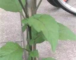 ⑶剪枝:茄子是双杈分枝作物,一般双干整枝,即对茄以上留两个枝条,每枝留一个茄,每层留两个茄。每级发出的侧枝在茄子长到一半大时留2-3片叶摘心。