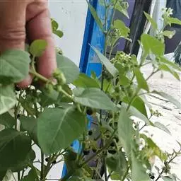茄子的生长势很强,侧枝多,叶片长得很快,尤其在气温适宜、肥料充足的情况下,植株更为繁茂。但是,若植株长得过密,就会引起落花、烂果,果实色泽也差。因此,修好叶茄子可提高产量。 叶片是制造和积累养分的器官,一般情况下茄子叶片越多,制造和积累养分也就越多。但是,如果叶片过多,会影响通风透光,且老叶和病叶不仅制造养分能力弱,还能传染病害,所以修去一部分健叶,摘除老叶、病叶,有利于植株生长和结实,喷施新高脂膜,能自动形成一层肉眼看不见的高分子保护膜,优化植物吸水、透气、透光质量。屏蔽病虫扑食信号和削弱传播媒介,抵抗和防御自然环境灾害。 修叶应该分次除去弱枝和基部的侧枝,以及老叶和病叶,并适当删去过密健叶,保持叶片稀疏均匀,以利通风透光。在茄子整个生长期,修叶4-5次,防止一次修叶过多、只剩顶上几片小叶的现象。此外,修叶的多少还要根据品种、肥料、天气等情况有所区别。一般分枝能力弱的品种,比分枝能力强的品种要少修;生长前期比生长后期要少修;肥料较少的比肥料充足的要少修;天气干旱比湿润多雨要少修,适时喷施菜果壮蒂灵,可激活植物生态生长正能量,拓宽植物导管路径,提升植物吸水吸肥力度,提升果实产量和质量,降低落果率,减少裂果、僵果、畸形果发生率。
