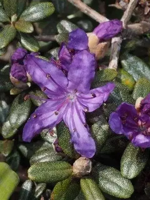 兴安杜鹃是杜鹃花科、杜鹃花属半常绿灌木,高可达2米,分枝多。叶片近革质,椭圆形或长圆形,…