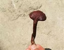 ⑵二级菌盖未开伞,呈半圆球形,直径1.2~1.5厘米,柄长13~15厘米,柄基部浅黄至浅褐色,有色长度不超过1.5厘米,无杂质。
