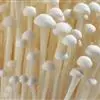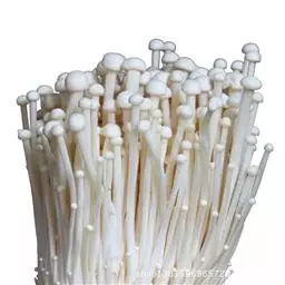 白金针菇 浙江省江山市微生物研究所菌株。出菇整齐,每丛200株左右,柄长15~23厘米,菌盖内卷,不易开伞。白色品系对光线不敏感,即使栽培环境有较强的散射光,子实体仍是通体洁白,有光泽,适合制罐或盐渍加工出口。