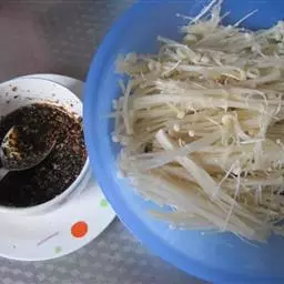 ⑴预煮把5%~10%食盐水置于铝锅内煮沸,倒入金针菇,煮沸5~7分钟,捞出沥去水分。