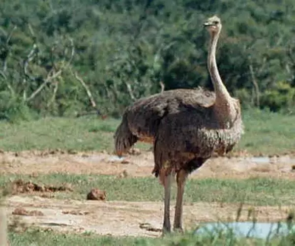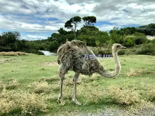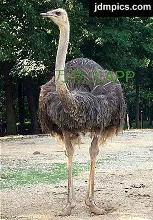 其形态很象非洲鸵鸟,它也有一只细长的腿、细长的头颈,弧形的背脊、徒有其名的翅膀,也是过着一雄多雌的群体生活,雌鸟管生蛋,雄鸟管孵卵。但是它和非洲鸵鸟有区别,一是其脚爪为3趾,而非洲鸵鸟为2趾,二是形体比非洲鸵鸟小,高度通常为1.5米,重20千克,三是羽毛没有非洲鸵鸟长。羽色多按身体部位而异,有的是油滑的棕色,有的是黑色和灰色。